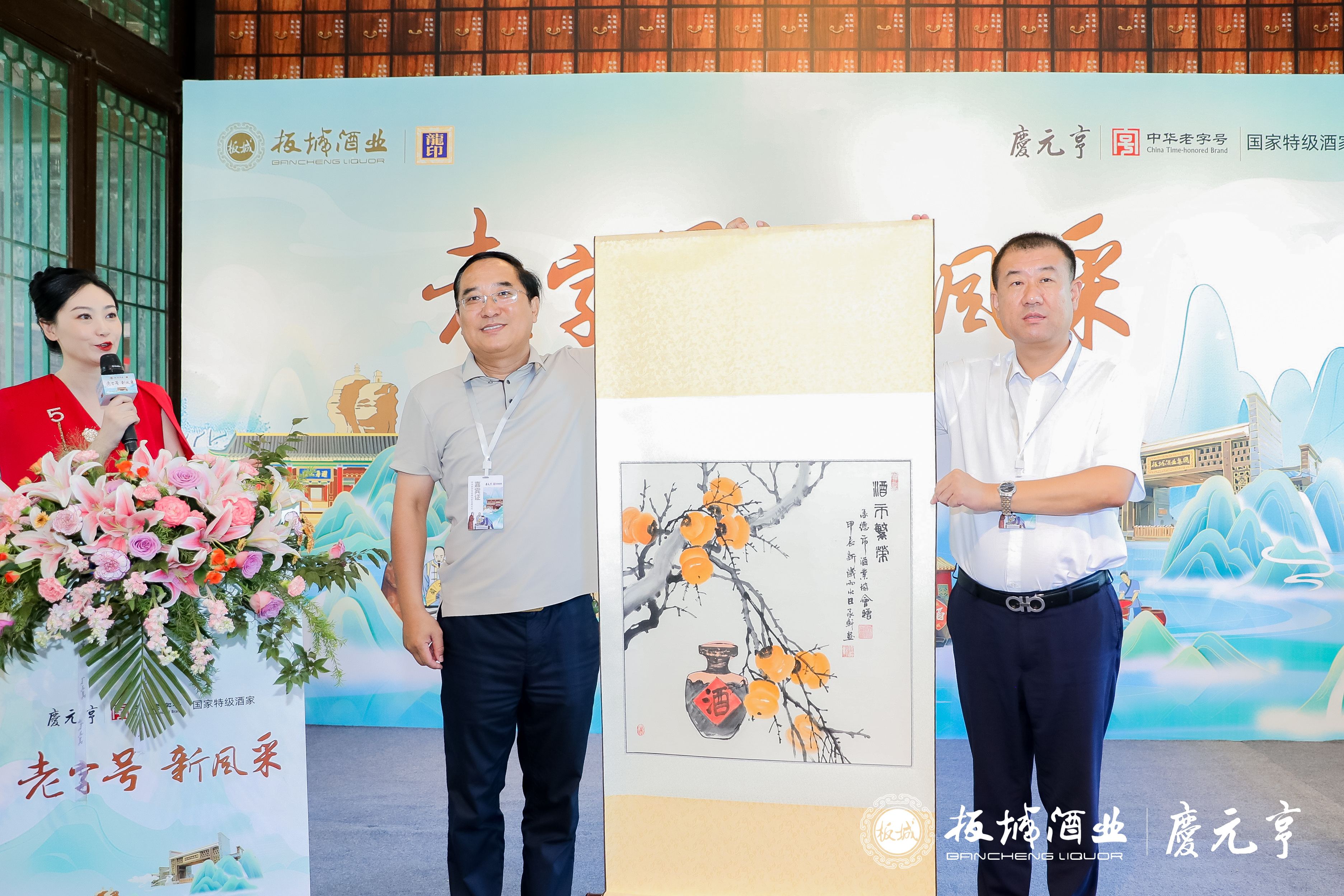 推介會最后,承德市酒業(yè)協(xié)會為板城酒業(yè)贈畫,并表示板城酒業(yè)作為雙中華老字號企業(yè),不僅是承德酒文化的瑰寶,承載著厚重的歷史和文化底蘊,更在全行業(yè)中展現(xiàn)出了卓越的領(lǐng)先能力。此次贈畫表達了對“板城燒鍋的酒”“慶元亨的菜”傳承與弘揚、創(chuàng)新與發(fā)展的深切期許。
