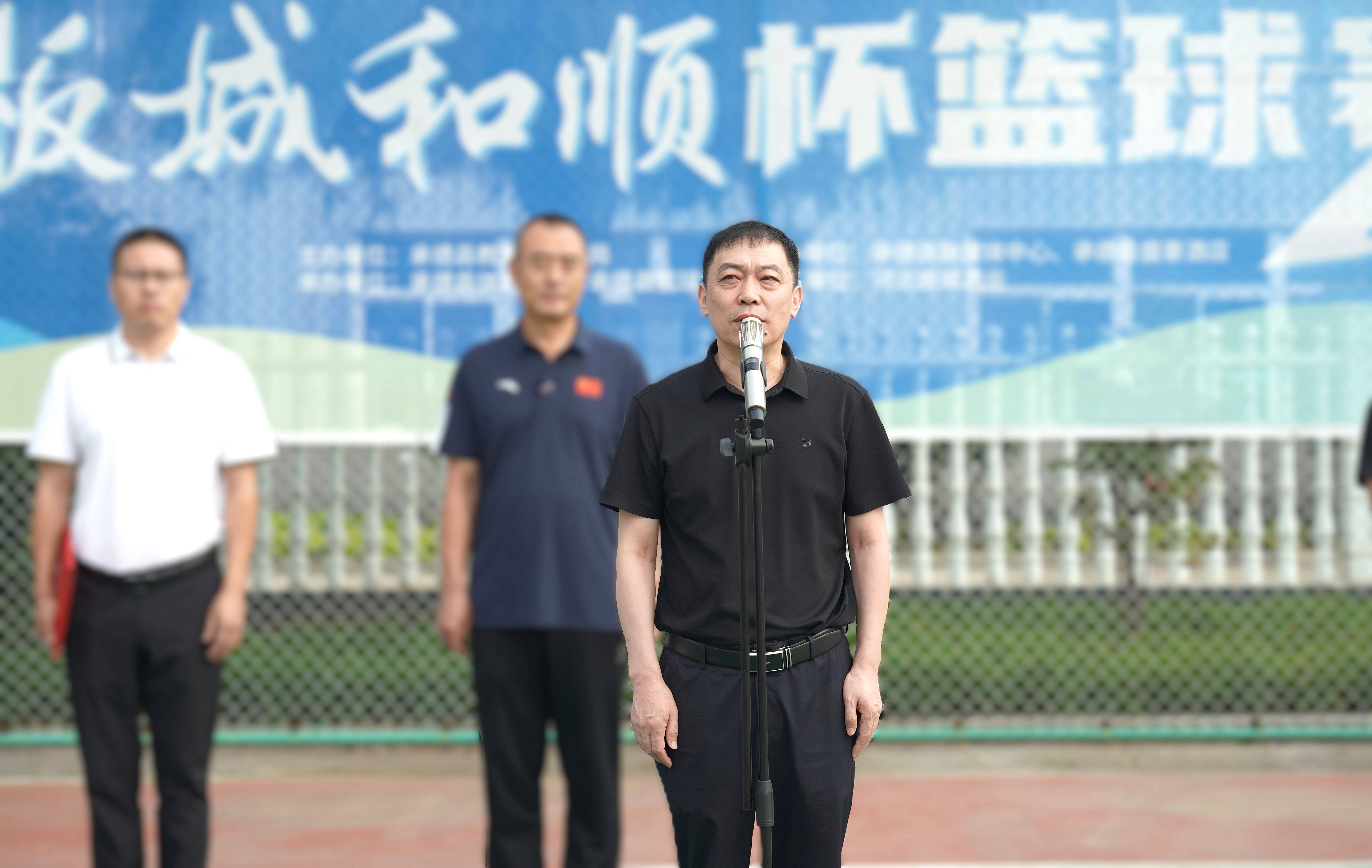 承德縣教育和體育局體育工作指導(dǎo)中心主任朱瑞東發(fā)表致辭,朱主任講到:“縣教體局聯(lián)合板城酒業(yè)持續(xù)舉辦體育賽事活動(dòng),連續(xù)舉辦七屆‘板城和順杯’籃球賽事,為承德縣全民健身提供了重要平臺(tái),縣教體局將持續(xù)開展全民健身活動(dòng),搭建全民健身平臺(tái),開展形式多樣的體育活動(dòng),讓承德縣人民參與多種體育賽事。”