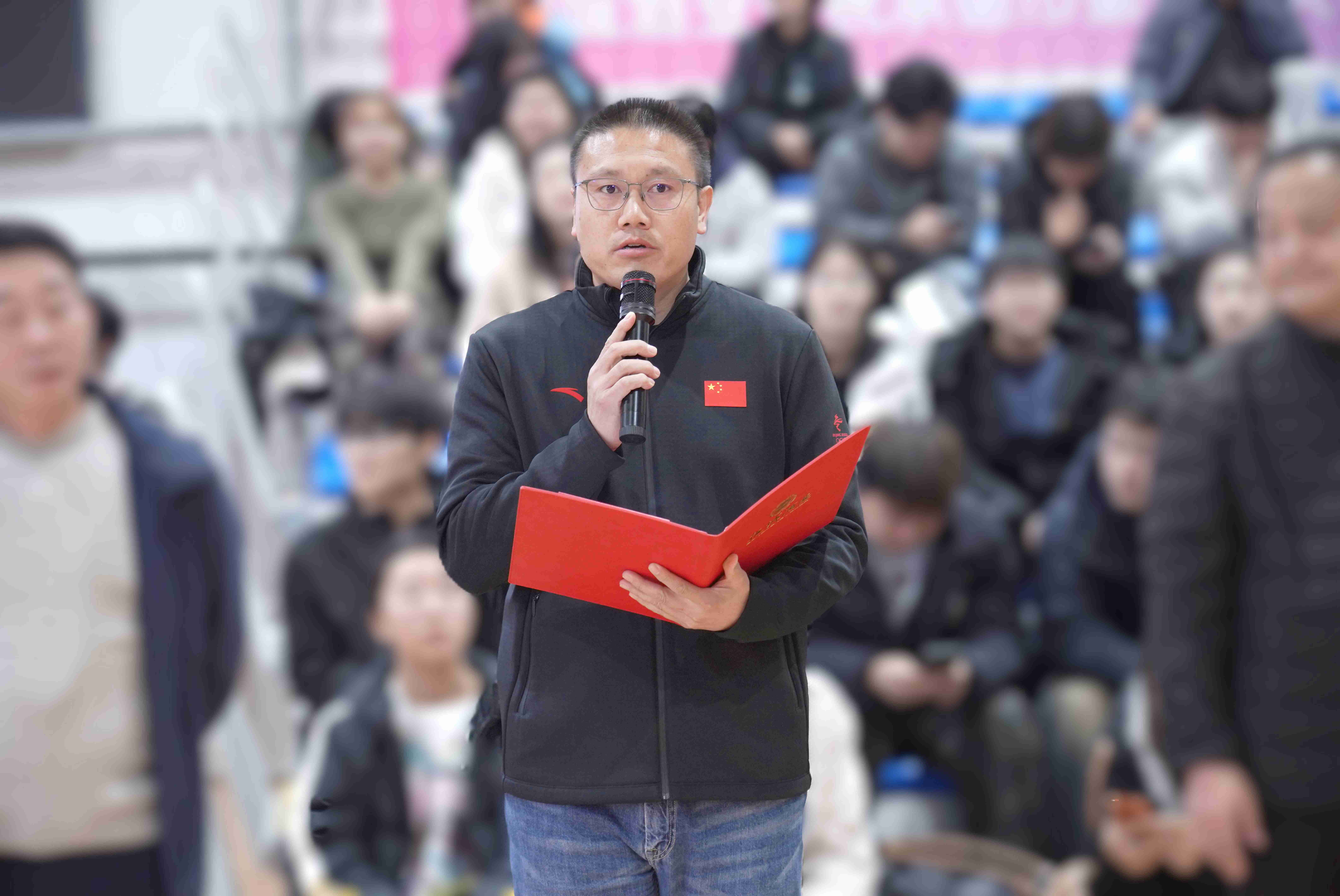 河北板城酒業(yè)銷(xiāo)售市場(chǎng)總監(jiān)王曉波致辭:“承德這片土地孕育的‘和合共生’精神,與板城酒業(yè)秉持的‘和順’文化一脈相承。我們期待本屆賽事不僅能展現(xiàn)競(jìng)技體育的激情,更能讓同學(xué)們?cè)趫F(tuán)隊(duì)協(xié)作中品味成長(zhǎng)之味,讓‘板城和順’的醇厚與青春的汗水交融,共釀今冬最美記憶。”