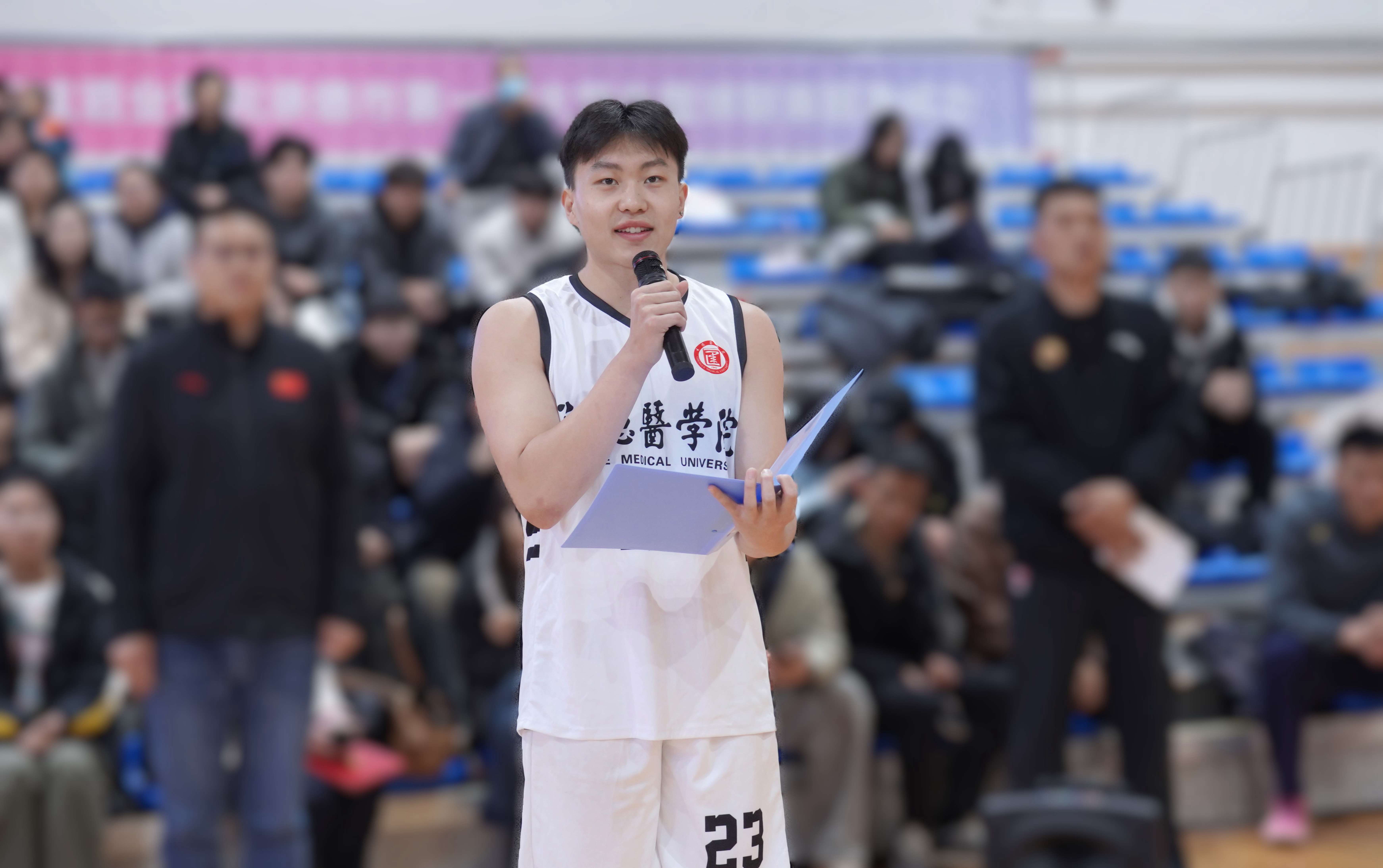 承德醫(yī)學(xué)院黨委常委、副校長(zhǎng)郭玉成致開(kāi)幕詞,郭校長(zhǎng)在開(kāi)幕辭中勉勵(lì)學(xué)子,恪守校訓(xùn),將籃球賽場(chǎng)上的拼搏與協(xié)作化為成長(zhǎng)養(yǎng)分。他高度肯定了“板城和順杯”所承載的校企協(xié)同育人新模式,這不僅是一次體育賽事,更是校企雙方深化合作、共育棟梁的生動(dòng)實(shí)踐,展現(xiàn)了企業(yè)回饋社會(huì)、助力教育發(fā)展的責(zé)任擔(dān)當(dāng)。